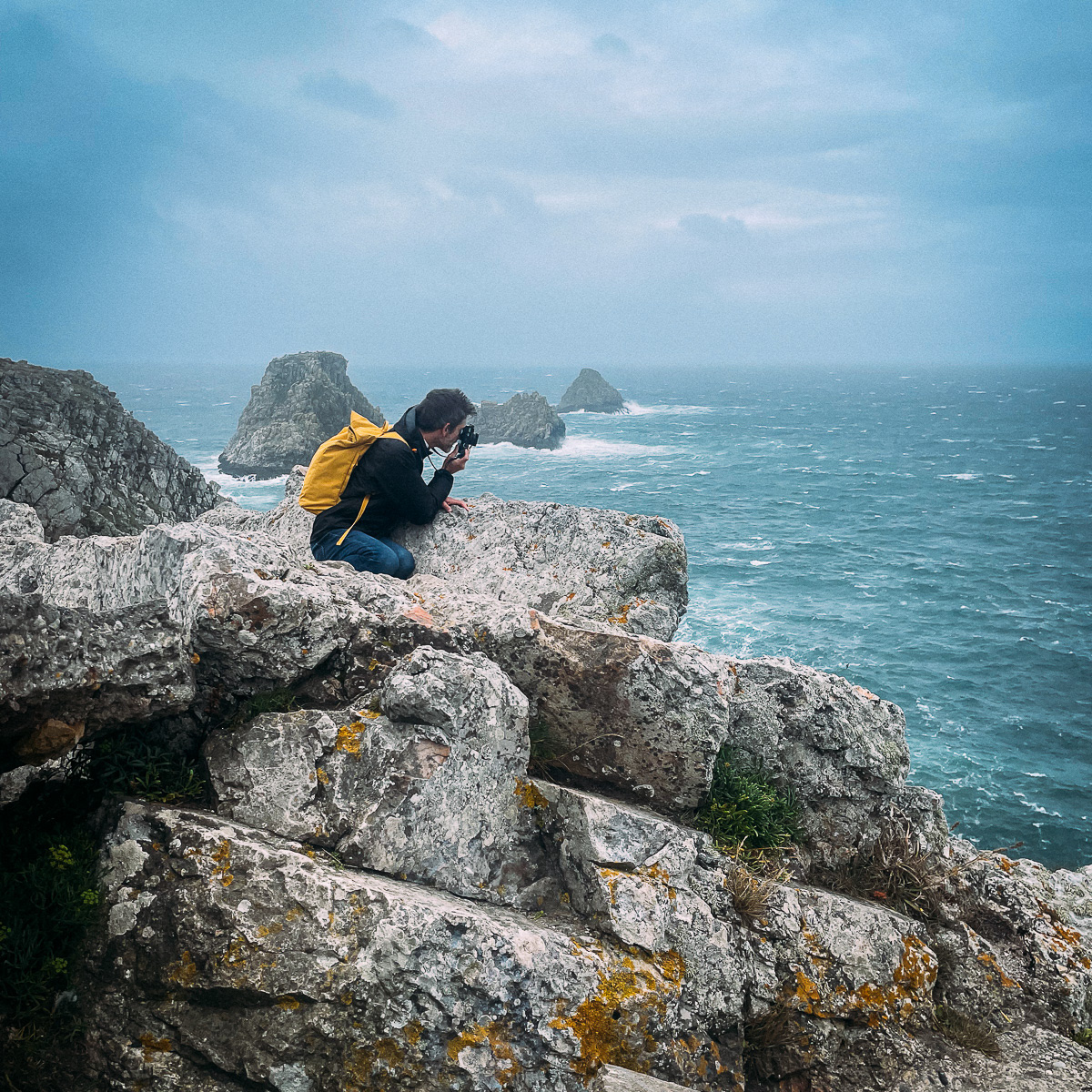 En bonus, Marie m'a demandé d'ajouter les coulisses de notre périple breton, ou sa vision du drôle de type au sac à dos jaune, avec son appareil photo autour du cou !